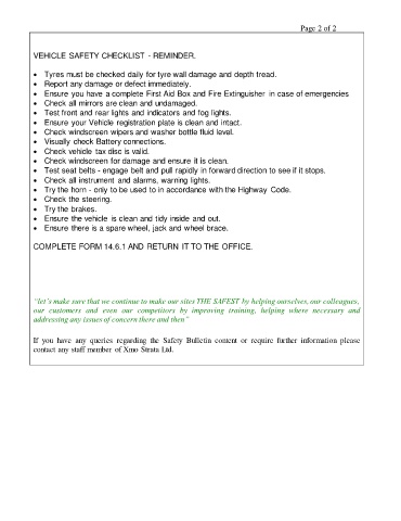 VEHICLE SAFETY CHECKLIST - REMINDER.