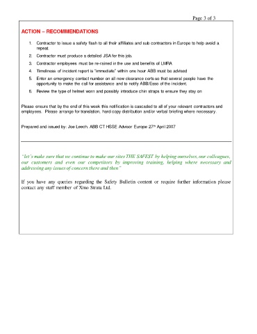 1. Contractor to issue a safety flash to all their affiliates and sub contractors in Europe to help avoid a