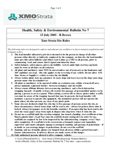 Archive\Health, Safety & Environmental Bulletin No 7 Site rules - superceeded.doc