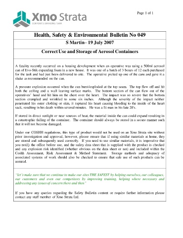 Health, Safety & Environmental Bulletin No 049