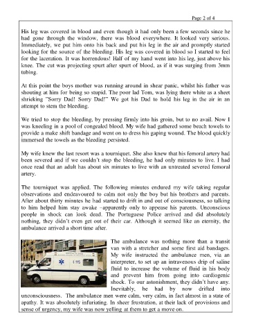 The tourniquet was applied. The following minutes endured my wife taking regular
