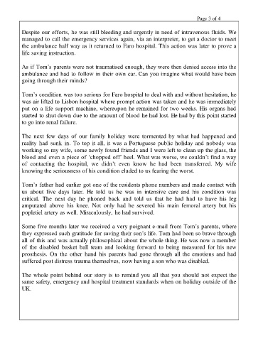 critical. The next day he phoned back and told us that he had had to have his leg