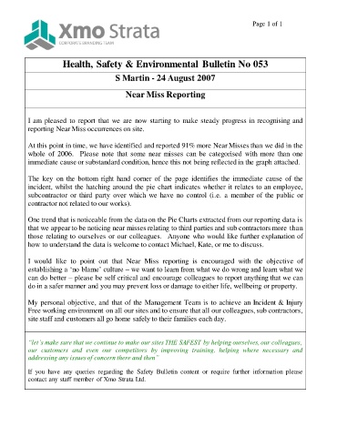 I would like to point out that Near Miss reporting is encouraged with the objective of