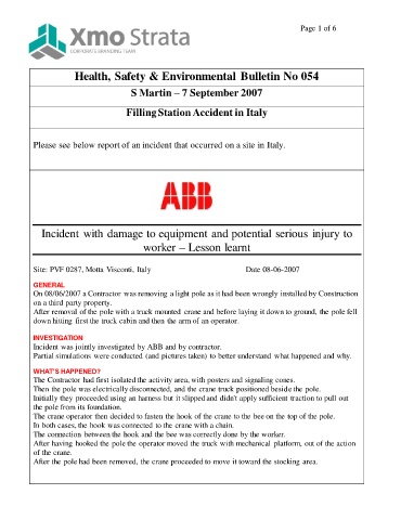 Health, Safety & Environmental Bulletin No 054
