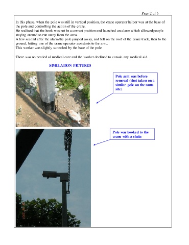 In this phase, when the pole was still in vertical position, the crane operator helper was at the base of