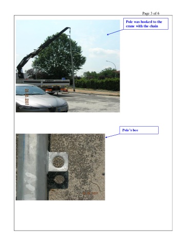 Page 3 of 6 Pole was hooked to the crane with the chain Pole’s bee