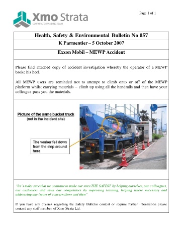 Please find attached copy of accident investigation whereby the operator of a MEWP