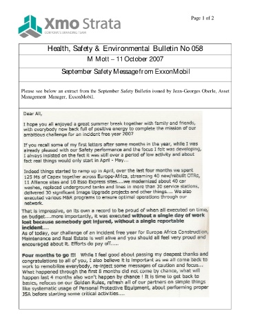 Please see below an extract from the September Safety Bulletin issued by Jean-Georges Oberle, Asset