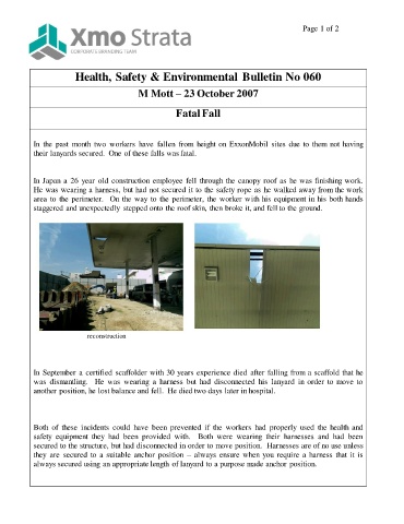 In the past month two workers have fallen from height on ExxonMobil sites due to them not having