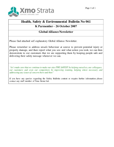 If you have any queries regarding the Safety Bulletin content or require further information please