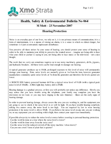protection if the noise level is above 85dB. If you believe the noise level on any site you are working