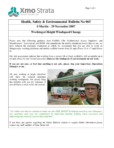 Health, Safety & Environmental Bulletin No 065