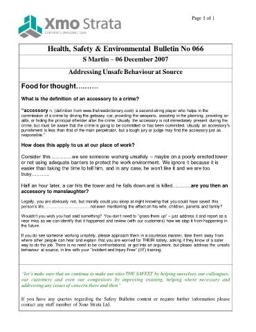 Health, Safety & Environmental Bulletin No 066