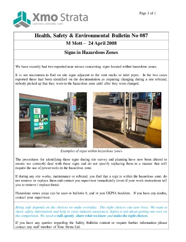We have recently had two reported near misses concerning signs located within hazardous zones.