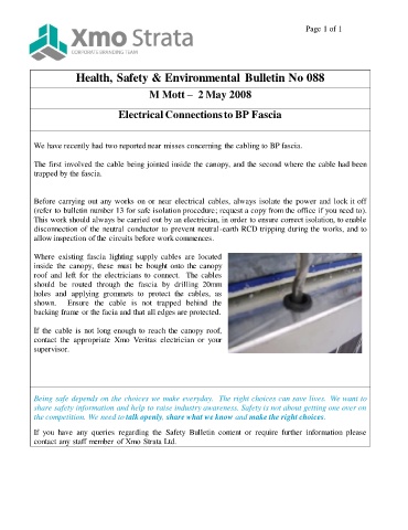 We have recently had two reported near misses concerning the cabling to BP fascia.