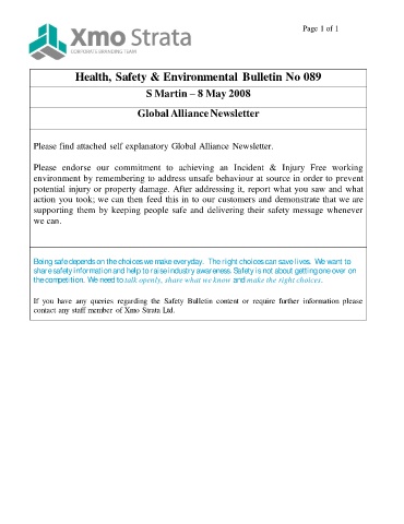 If you have any queries regarding the Safety Bulletin content or require further information please