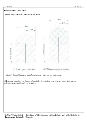 Fig 3.5 – Typical hazardous area classification around a storage tank vent pipe