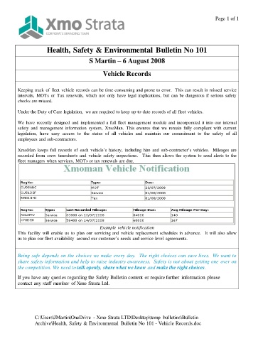 Archive\Health, Safety & Environmental Bulletin No 101 - Vehicle Records.doc