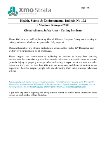 Global Alliance Safety Alert – Cutting Incidents