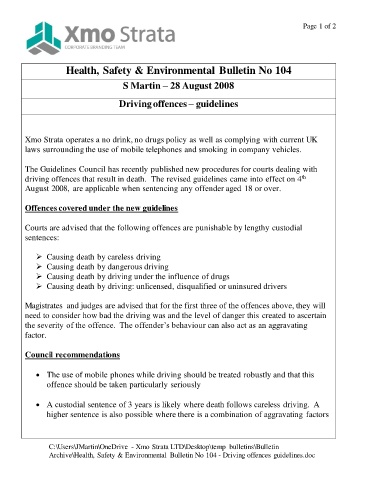 Archive\Health, Safety & Environmental Bulletin No 104 - Driving offences guidelines.doc