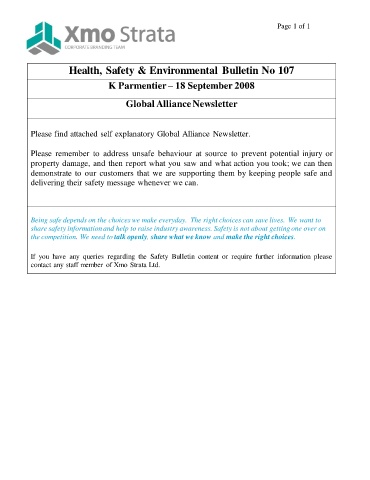 Health, Safety & Environmental Bulletin No 107