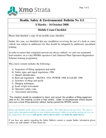 Please find attached a copy of our mobile crane checklist.