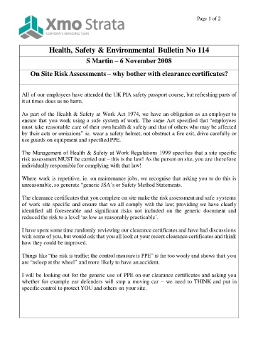 The clearance certificates that you complete on site make the risk assessment and safe systems