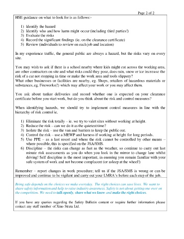 improved and continue to be vigilant and carry out your LMRA’s before each step of the job.
