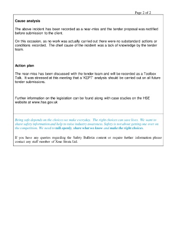 The above incident has been recorded as a near-miss and the tender proposal was rectified