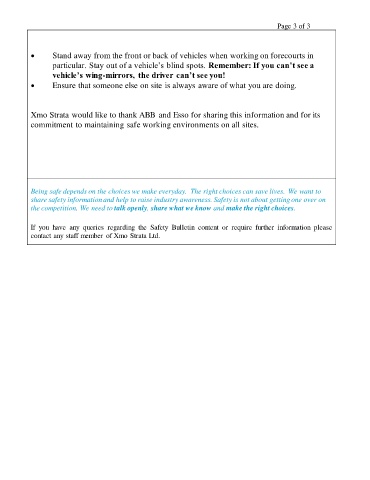 If you have any queries regarding the Safety Bulletin content or require further information please