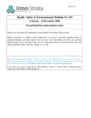 Please see enclosed self explanatory ExxonMobil November Safety Letter.