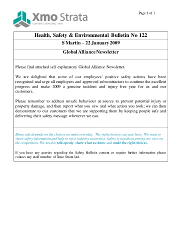 If you have any queries regarding the Safety Bulletin content or require further information please