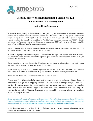 If you have any queries regarding the Safety Bulletin content or require further information please