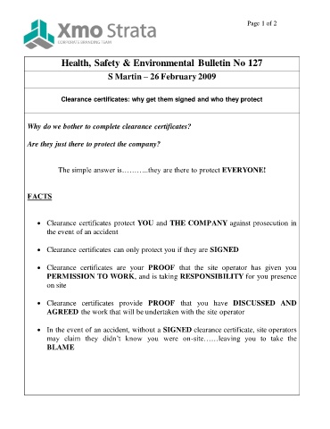 Health, Safety & Environmental Bulletin No 127