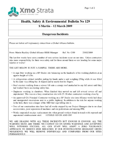 Health, Safety & Environmental Bulletin No 129