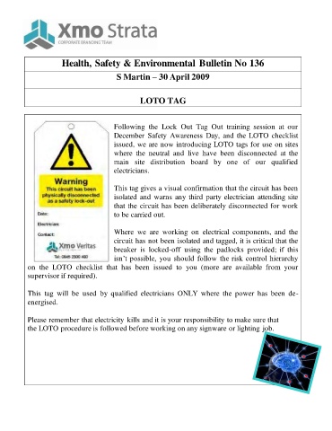 This tag will be used by qualified electricians ONLY where the power has been de-