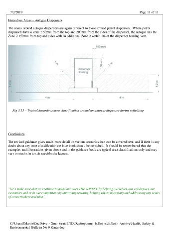 Fig 3.15 – Typical hazardous area classification around an autogas dispenser during refuelling