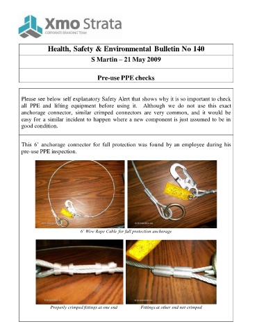 all PPE and lifting equipment before using it. Although we do not use this exact