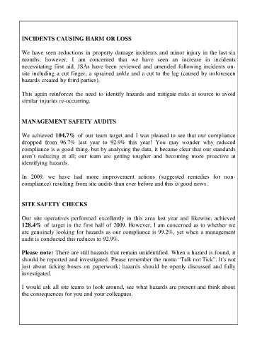 necessitating first aid. JSAs have been reviewed and amended following incidents on-