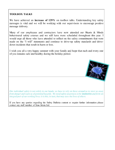 We have achieved an increase of 129% on toolbox talks. Understanding key safety