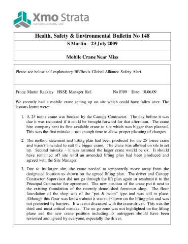 From: Martin Rackley HSSE Manager Ref. No F/09 Date: 10.06.09