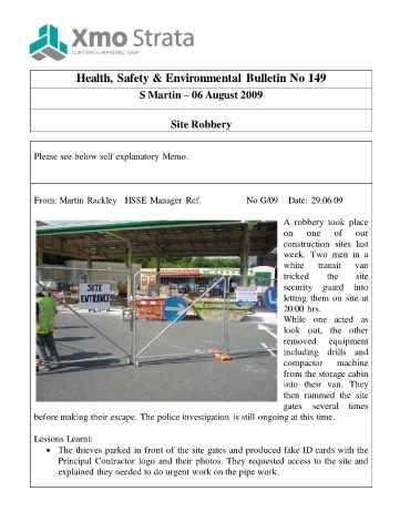 From: Martin Rackley HSSE Manager Ref. No G/09 Date: 29.06.09