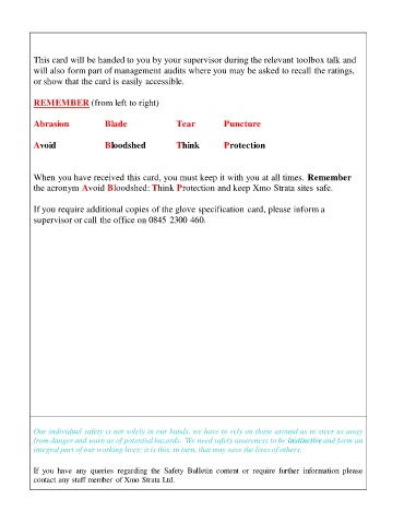 This card will be handed to you by your supervisor during the relevant toolbox talk and