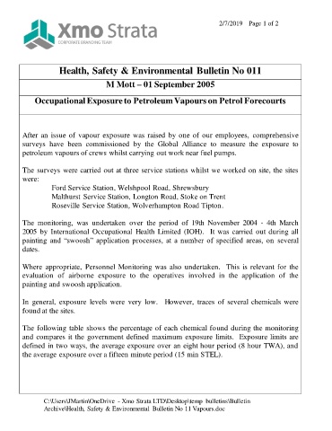 Archive\Health, Safety & Environmental Bulletin No 11 Vapours.doc