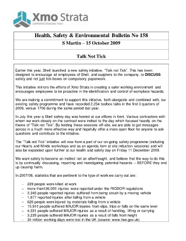 The “Talk not Tick” initiative will now form a part of our on-going safety programme (including