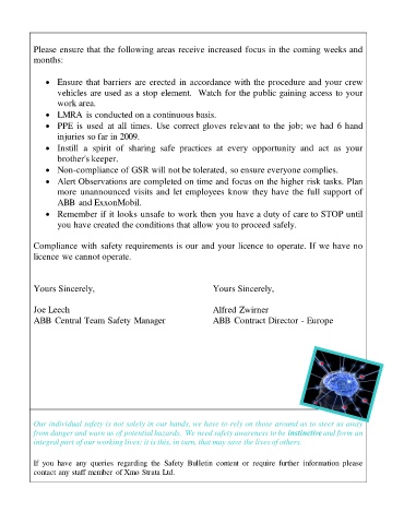 If you have any queries regarding the Safety Bulletin content or require further information please