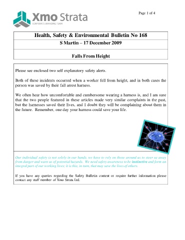 If you have any queries regarding the Safety Bulletin content or require further information please