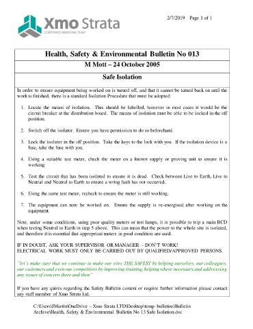 Archive\Health, Safety & Environmental Bulletin No 13 Safe Isolation.doc