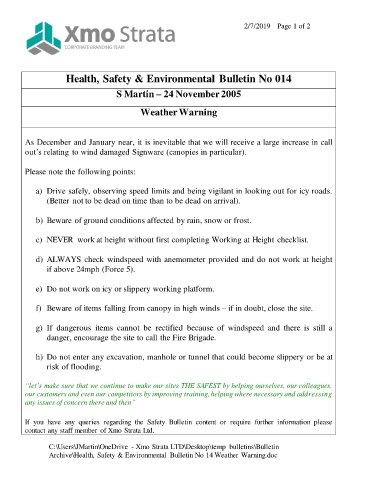 Archive\Health, Safety & Environmental Bulletin No 14 Weather Warning.doc