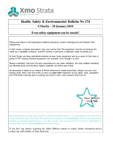 If you have any queries regarding the Safety Bulletin content or require further information please